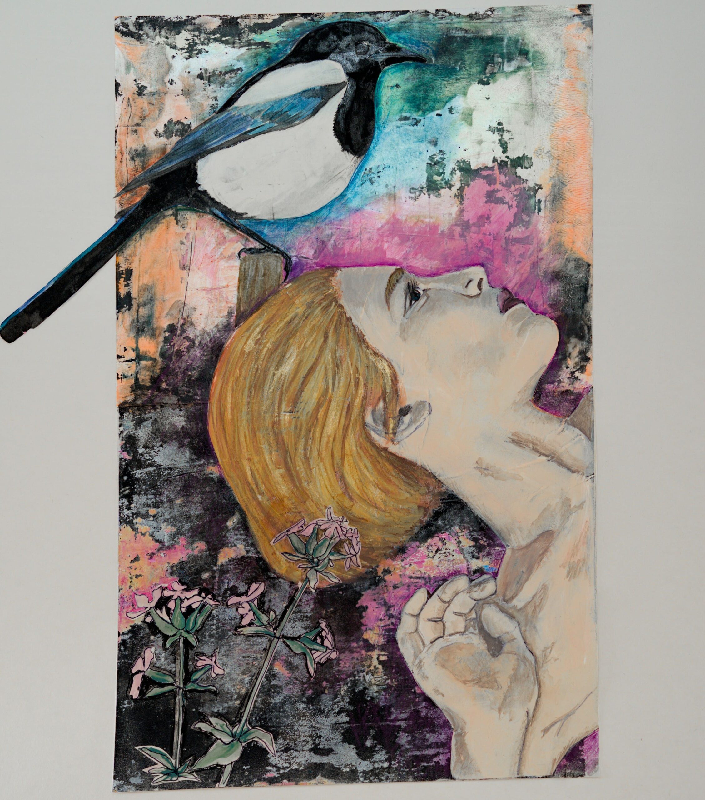 This series is very close to my heart. The women, flowers, and birds that appear in my work are not just decorative — they’re symbols of inner states, emotions, and the many changes we go through. Sometimes they speak of vulnerability, sometimes of resilience, sometimes of quiet joy or grief.