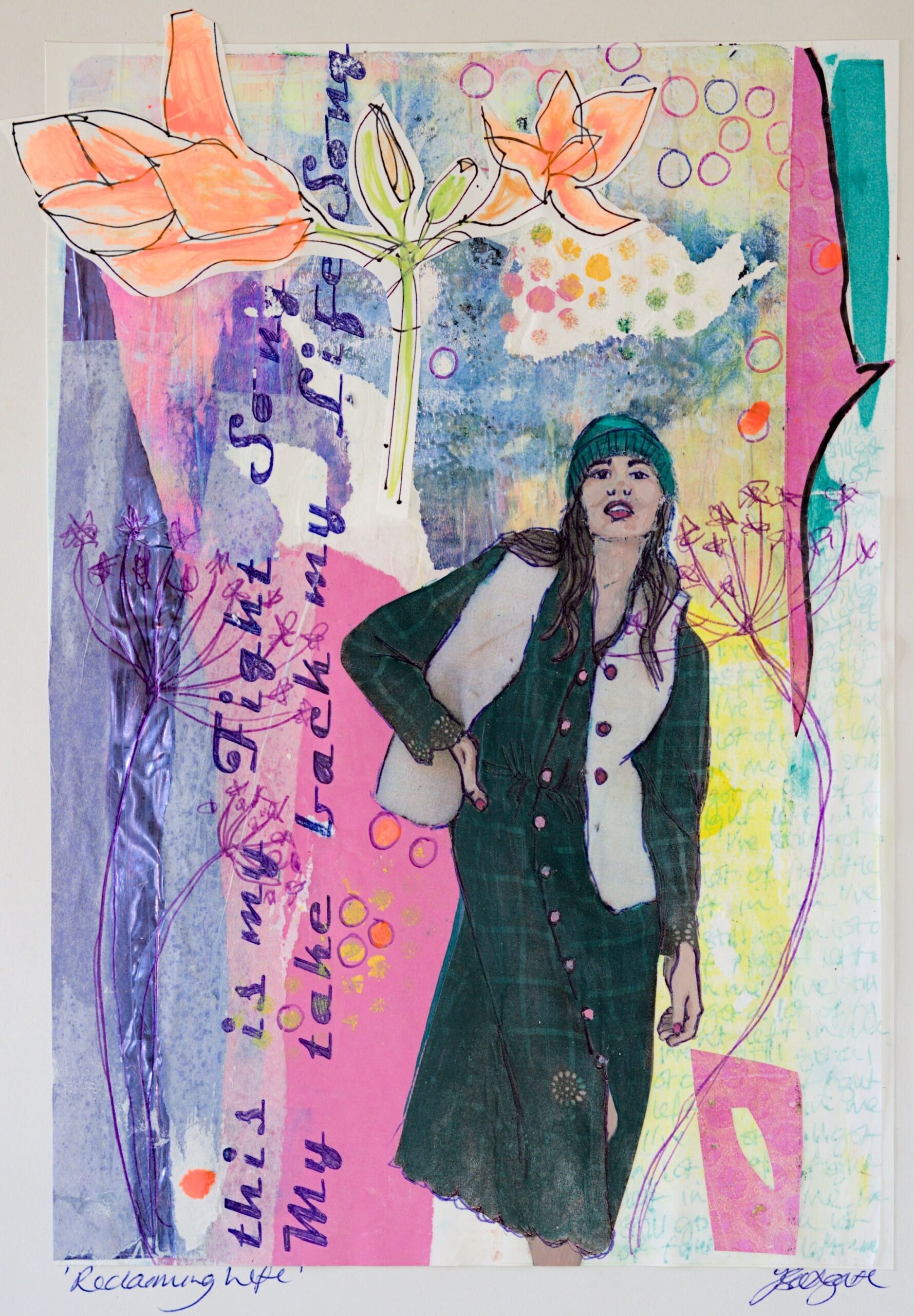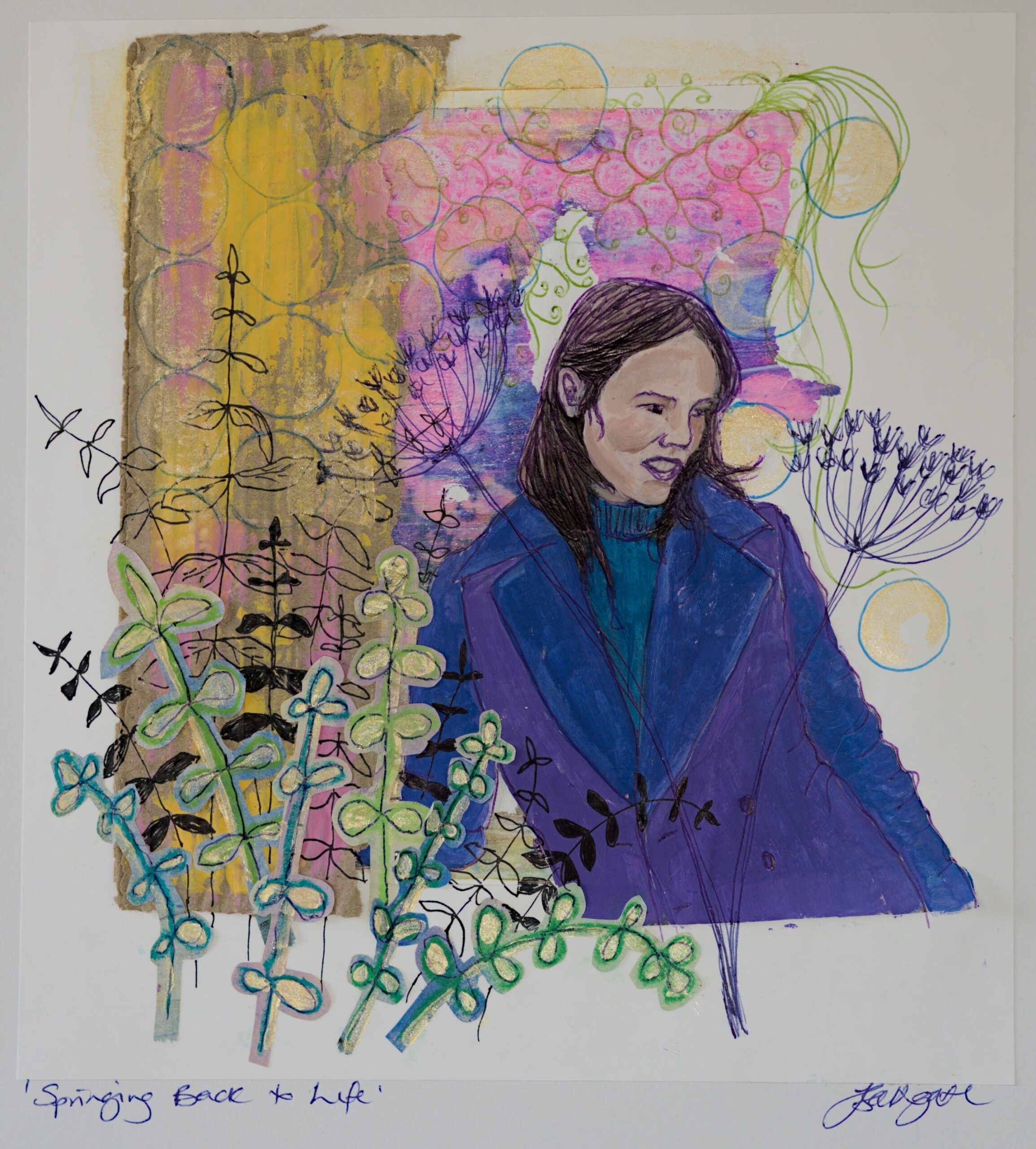 For me, painting these pieces has been a way of working through my own shifts — in body, identity, and purpose — and allowing myself to see beauty in the becoming. The flowers carry meanings of growth, renewal, and fragility; the birds, of freedom, watchfulness, or spirit; the women, of course, hold the stories we so often keep hidden.